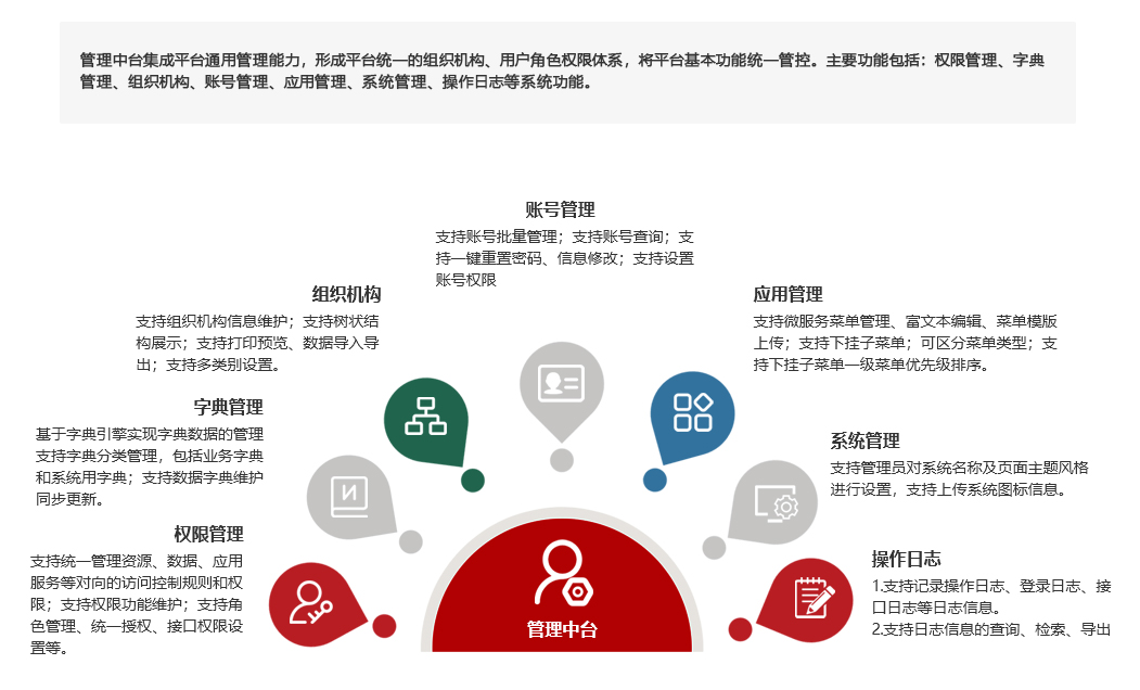 包含控制臺、組織架構、黨建動態、黨員學習、組織活動、志愿服務、黨費管理、監督執紀功能模塊。通過黨建在線學習教育,解決黨建學習難問題,實現便捷化管理;黨務工作流程及黨建資訊全掌握、黨建工作全方位可視,統一數據標準,智能分析績效考評,成績一目了然,做到數據指標化;積極推進黨建工作高效完成,信息高效處理。